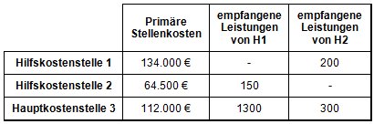 Es existieren folgende Methoden der innerbetrieblichen Leistungsverrechnung: Stufenleiterverfahren. In einem Unternehmen fielen, die in der folgenden Tabelle dargestellten. Sie eine innerbetriebliche Leistungsverrechnung nach dem Anbauverfahren durch.